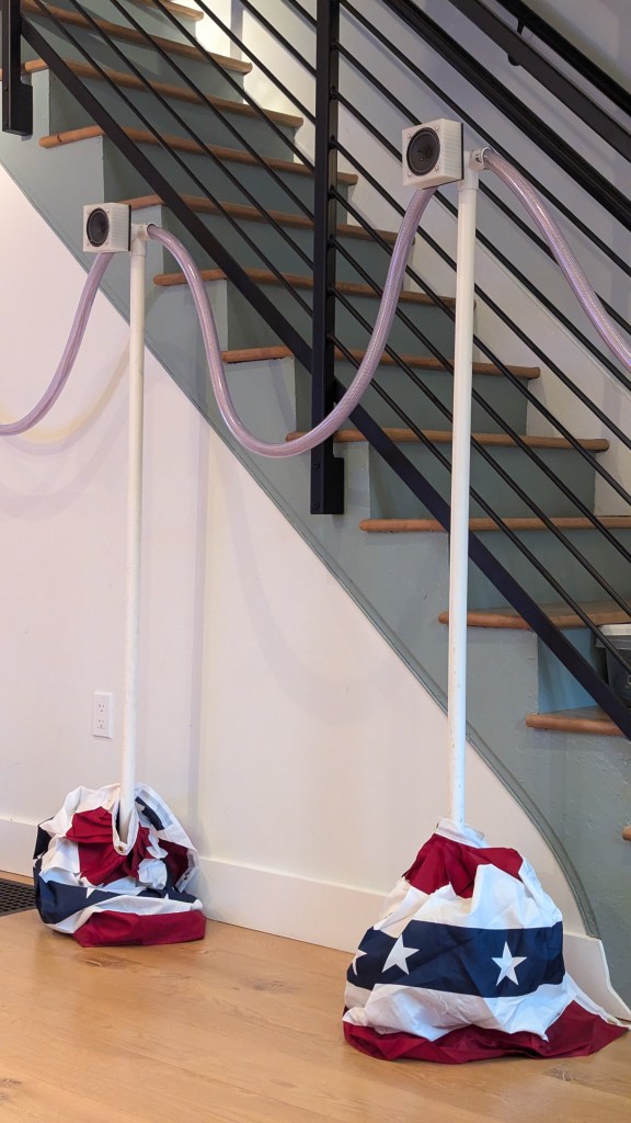 The theme of the Festival was presented to artists as an ode to “Noise”. The fundamental block of my artwork is the sound of language. With the polarization of politics, language becomes Noise when there is no Truth. James Kirchick wrote “Today ‘disinformation’ and ‘misinformation” are often invoked by the left in the same way ‘fake news’ is by the right: as derogatory terms for arguments or evidence unhelpful to one’s political tribe.”¹ In a world where political rhetoric is Truth or Lie, Real or AI Generated, the strategy of politicians and media is to create states of “Discredit” and “Reaffirm”.
